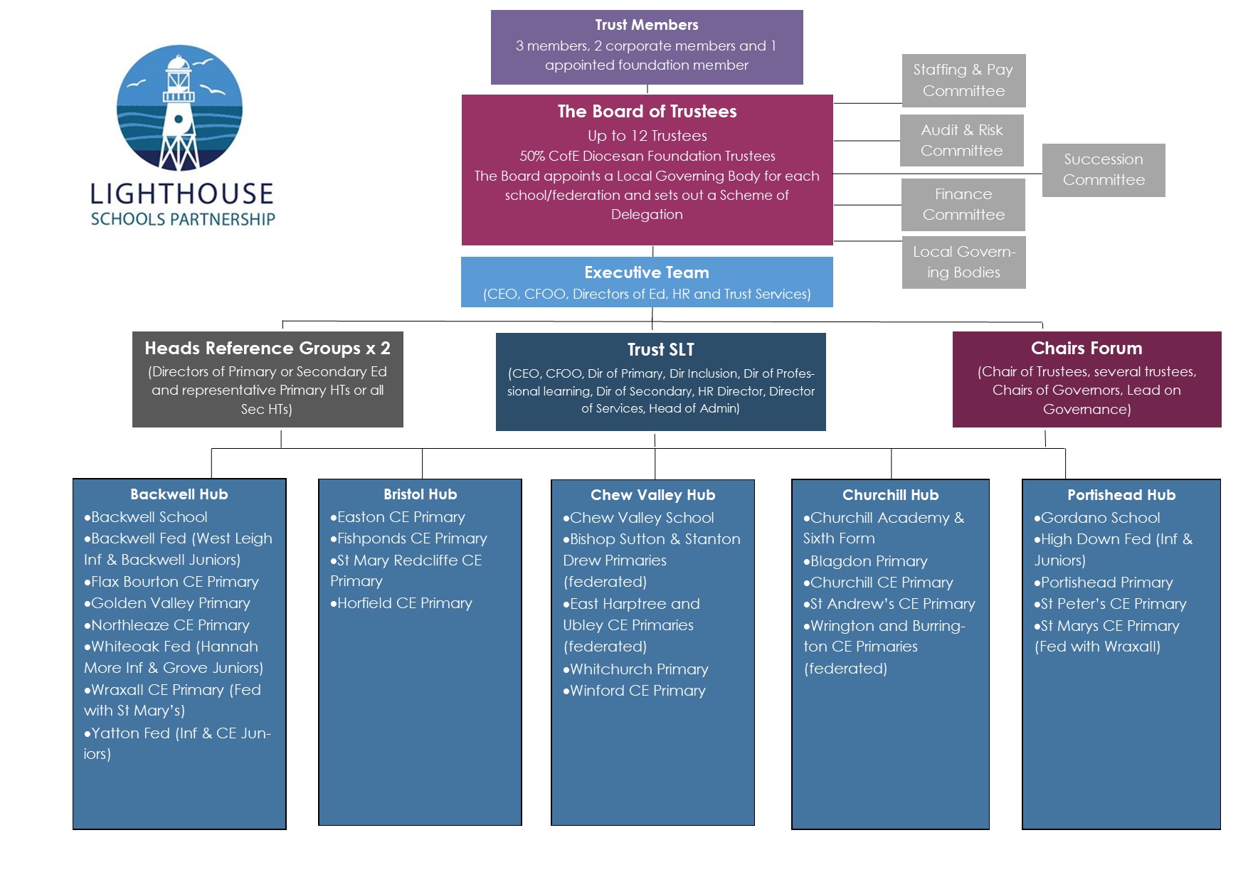 Effective governance is key to the success of our Trust and as a charitable company, limited by guarantee, we rely on the support of our volunteer Governors, Trustees and Members, supported by the Diocese of Bath & North Wells and our Executive Team.